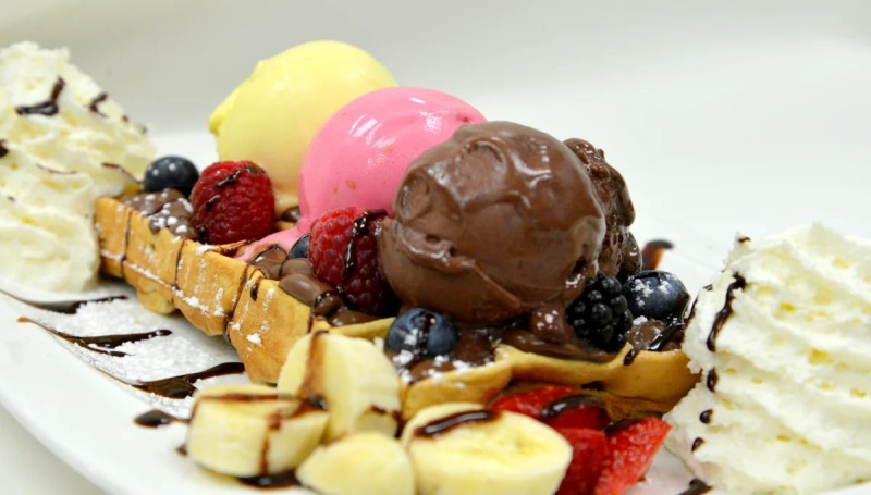 В мороженое можно добавить орешки, тёртый шоколад или даже кофе. Дозируется десерт, как правило, шариками (с возможностью заказа сразу нескольких сортов). Способ подачи зависит от концепции заведения: это может быть изящная вазочка или же хрустящий конусообразный вафельный стаканчик.
