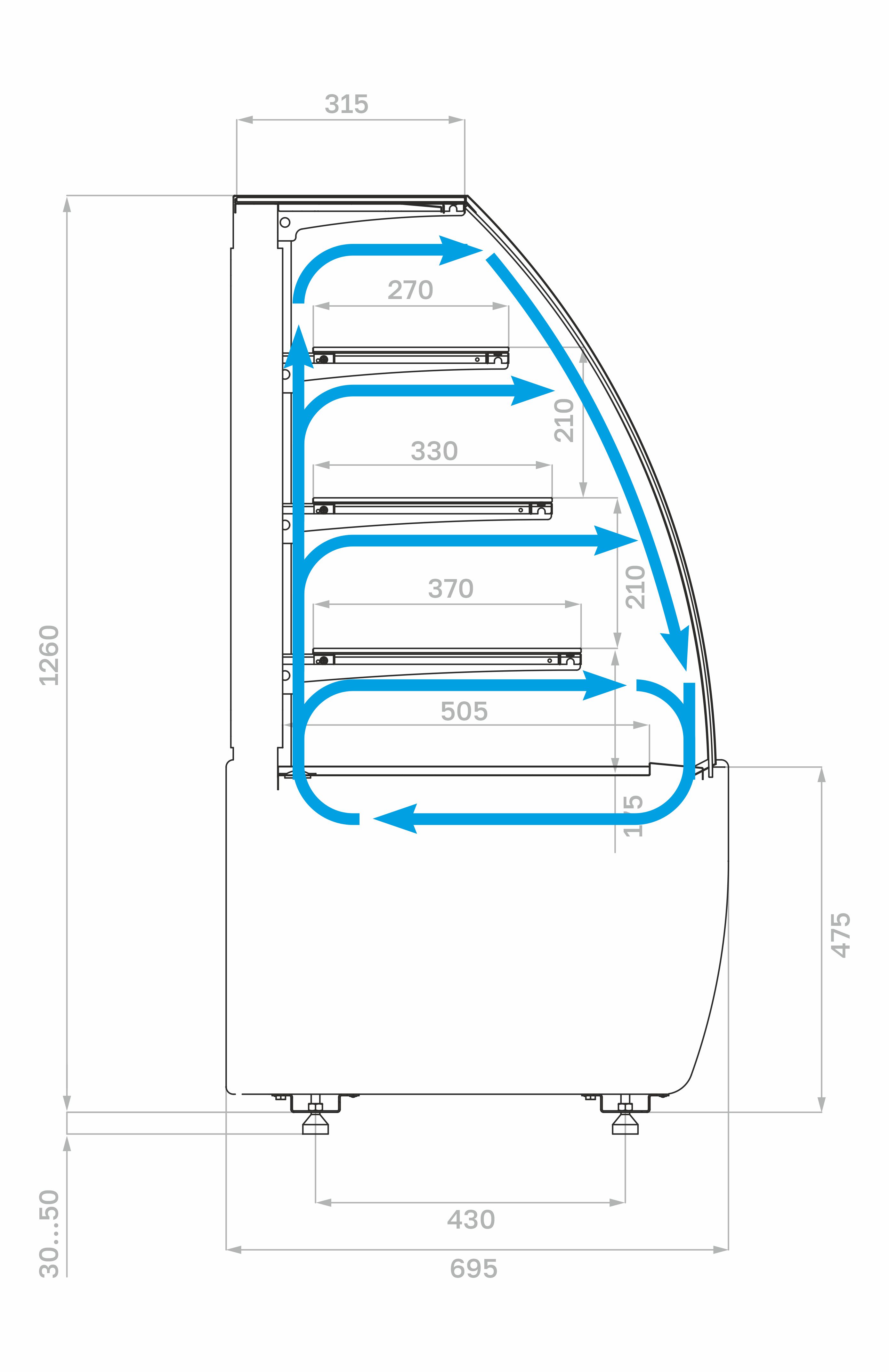- Высота выкладки продуктов для демонстрации должна быть не более 150 мм