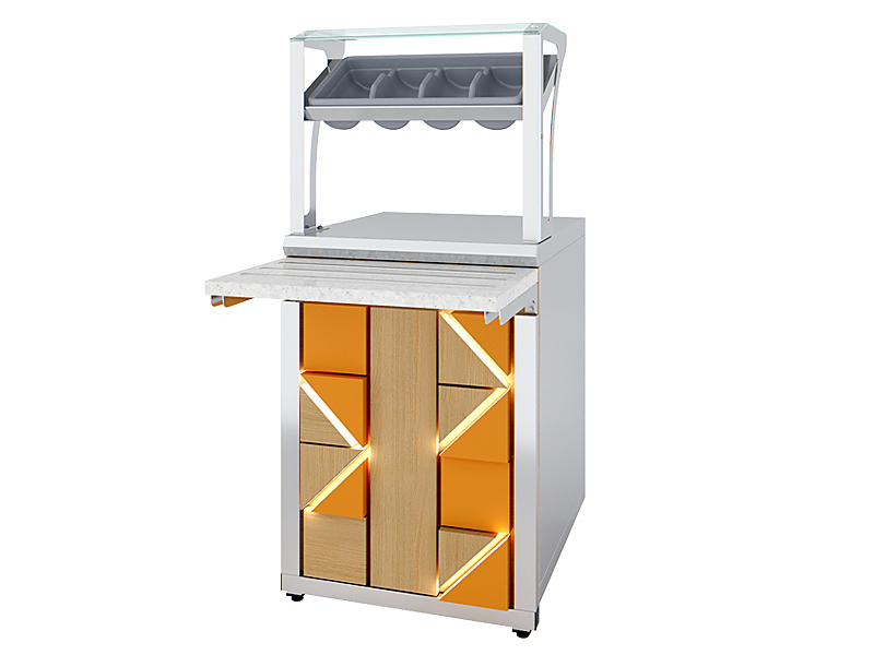 Прилавок Luxstahl ПП (С)-600 Premium используется в составе линии раздачи на предприятиях общественного питания и торговли для хранения и раздачи столовых приборов и подносов. Модель оснащена верхней полкой из двойного стекла 6 мм. Материал изделия - высококачественная нержавеющая сталь.