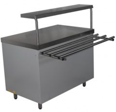 Прилавок Rada ПН-11/7 линии раздачи Школьник подходит для использования в кафе с системой самообслуживания и в крупных супермаркетах. Столешница и полка выпонены из нержавеющей стали AISI 304, боковые и передние панели - из окрашенной в серый цвет оцинковки.