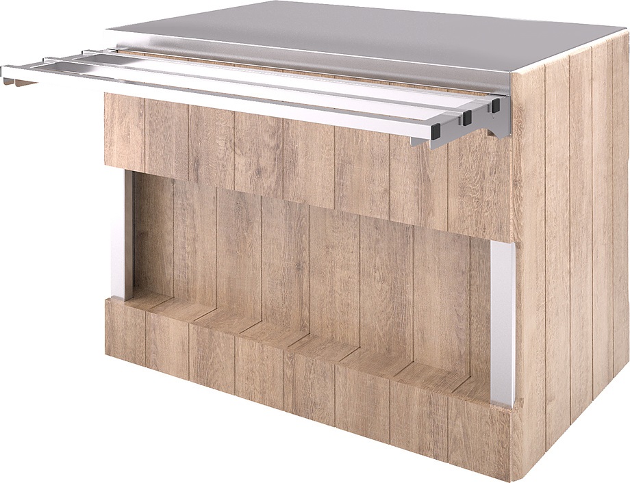 Прилавок нейтральный угловой Refettorio Capital RN11В предназначается для использования в составе линии раздачи Capital для выкладки, демонстрации и предпродажного хранения продуктов, холодных и горячих напитков, установки специализированного оборудования на предприятиях общественного питания и торговли. Углы столешницы проварены, крепежные элементы скрыты, модули столешниц стыкуются без зазоров. Прилавок оснащен нишей для хранения кухонной утвари, располагающейся со стороны рабочего персонала. Материал столешницы - нержавеющая сталь (толщина 1.2 мм), материал фасада - ламинированный МДФ.