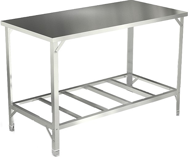Стол производственный AppetiTT СПРО-606 Ц предназначен для раскатки теста, обработки ингредиентов и хранения кухонного инвентаря на предприятиях общественного питания, торговли и пищевых производствах. Материал каркаса - оцинкованная сталь толщиной 1.5 мм, материал столешницы - высококачественная нержавеющая сталь AISI 430 толщиной 0.5 мм, материал подложки - ДСП толщиной 16 мм, материал полки-решетки - оцинкованная сталь толщиной 0.8 мм.