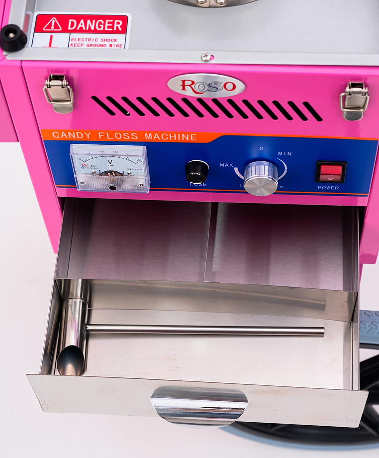 Аппарат Rosso HEC-03C используется на предприятиях общественного питания, торговли и пищевых производствах для приготовления сахарной ваты. Модель оснащена рабочей головкой с ТЭНом, термостатом, вольтметром, выдвижным ящиком и мобильной тележкой. Материал чаши-ловителя - высококачественная нержавеющая сталь.