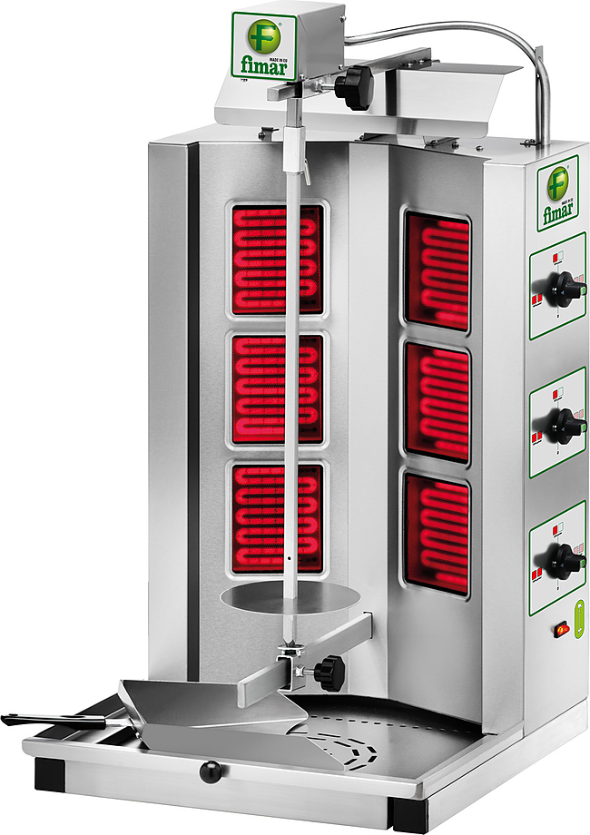 Гриль для шаурмы FIMAR GYR60 используется на предприятиях общественного питания и торговли для приготовления мясной начинки. Модель оснащена 3 уровнями мощности, инфракрасными ТЭНами с керамическим покрытием и жаростойким защитным стеклом. Корпус, шампур, лопатка и поддон для сбора отходов выполнены из нержавеющей стали.