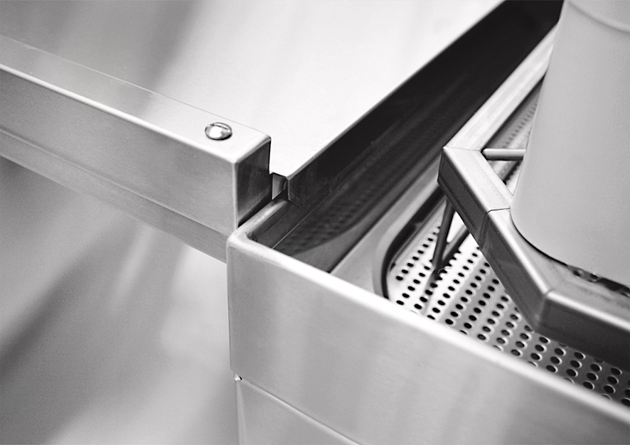 • Крепление к посудомоечной машине с помощью верхнего зацепа и нижних винтов