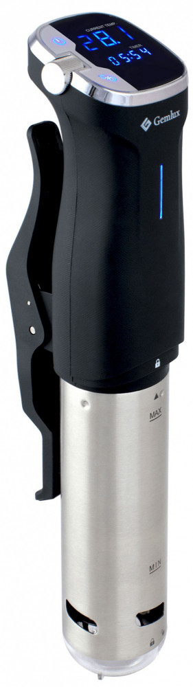 Аппарат Sous Vide Gemlux GL-SV800BLR используется на предприятиях общественного питания, торговли, в частных домах и квартирах для приготовления широкого спектра блюд в герметичных пакетах в горячей воде при невысоких температурах. Модель оснащена электронным управлением, ЖК-дисплеем, рециркуляционным насосом, таймером, терморегулятором и фиксатором. Материал корпуса - металл и пластик.