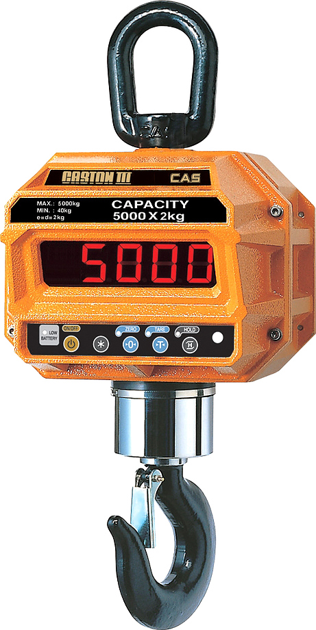 Крановые весы CAS Caston-III 15 THD TW-100 используются на любых типах подъемных устройств в складской, текстильной, металлургической и других отраслях промышленности для статического взвешивания грузов. Модель оснащена светодиодным дисплеем и вращающиймся крюком.